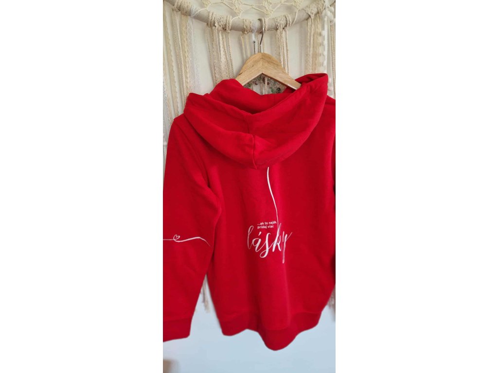 Mikina s kapucňou, rukávy s patentami, vrecko vpredu, tzv.klokanka, s nápisom "Ak to nejde, pridaj viac lásky"