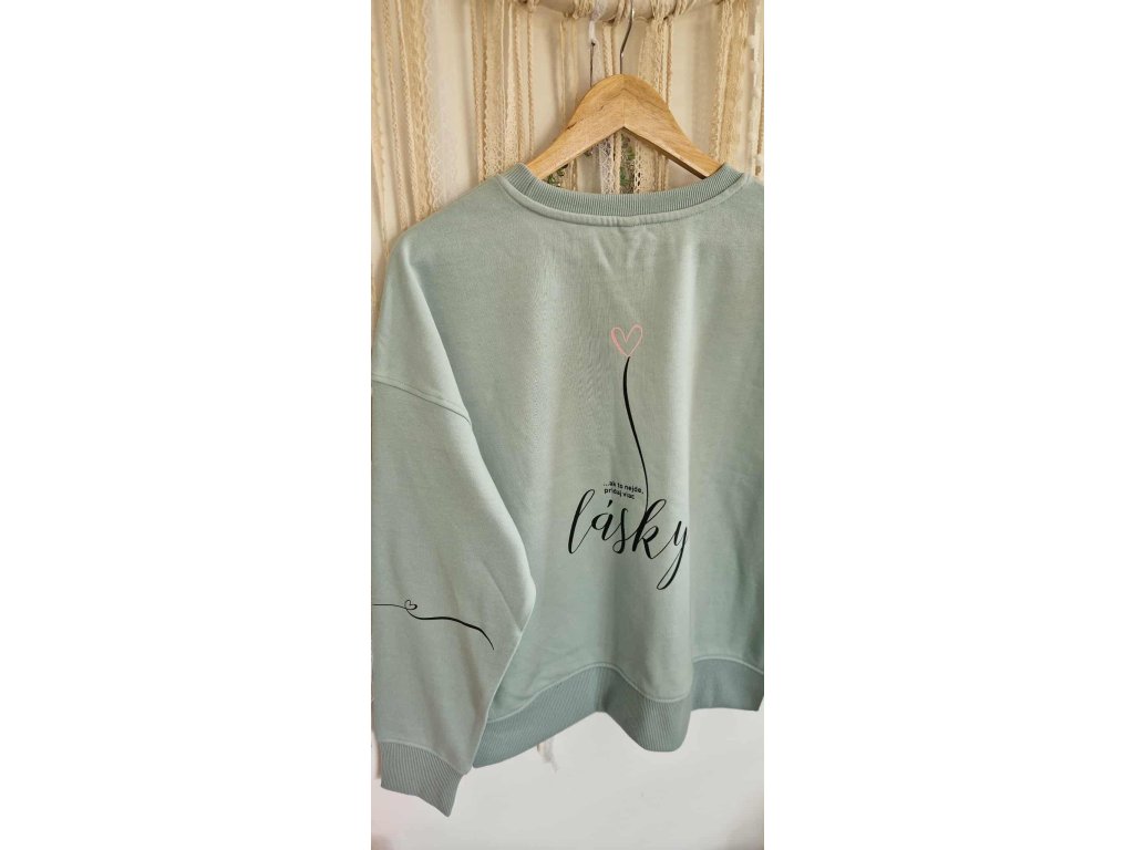 Mikina bez kapucne, rukávy s patentami, s nápisom "Ak to nejde, pridaj viac lásky"